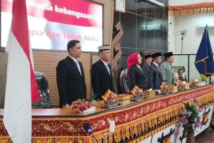 Jurnal kota.net – Metro | Walikota Metro Bambang Iman Santoso dan Wakil Walikota M. Rafieq Adi Pradana menyampaikan pidato perdananya dalam rapat paripurna di Gedung Dewan Perwakilan Rakyat Daerah (DPRD) Kota Metro, Senin, (03/03/2025).