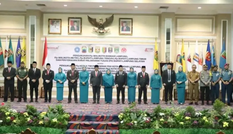 Dipimpin oleh Pj Gubernur Lampung Samsudin, pengukuhkan Descatama Paksi Moeda melengkapi empat Pjs kepala daerah sesuai Keputusan Mendagri Nomor 100.2.1.3-3799 2024 tentang penunjukan pejabat sementara Bupati dan pejabat sementara Walikota di Provinsi Lampung.