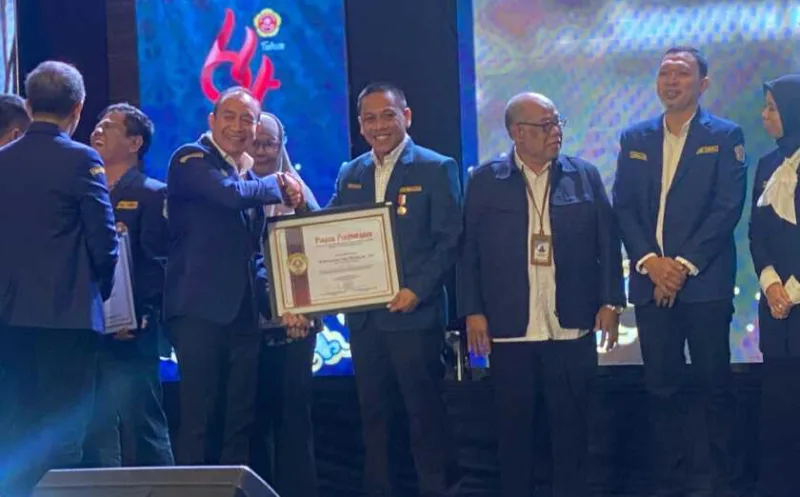 Jurnal Kota.net – Metro | Pjs. Wali Kota Metro, Descatama Paksi Moeda menerima penghargaan Satyalencana Aditya Karya Mahatya Yodha, saat hadir pada Rapat Kerja Nasional (Rakernas) Bulan Bhakti Karang Taruna Nasional, di Ballroom Hotel Mason Pine, Kota Bandung, Jawa Barat, Selasa (15/10/2024).