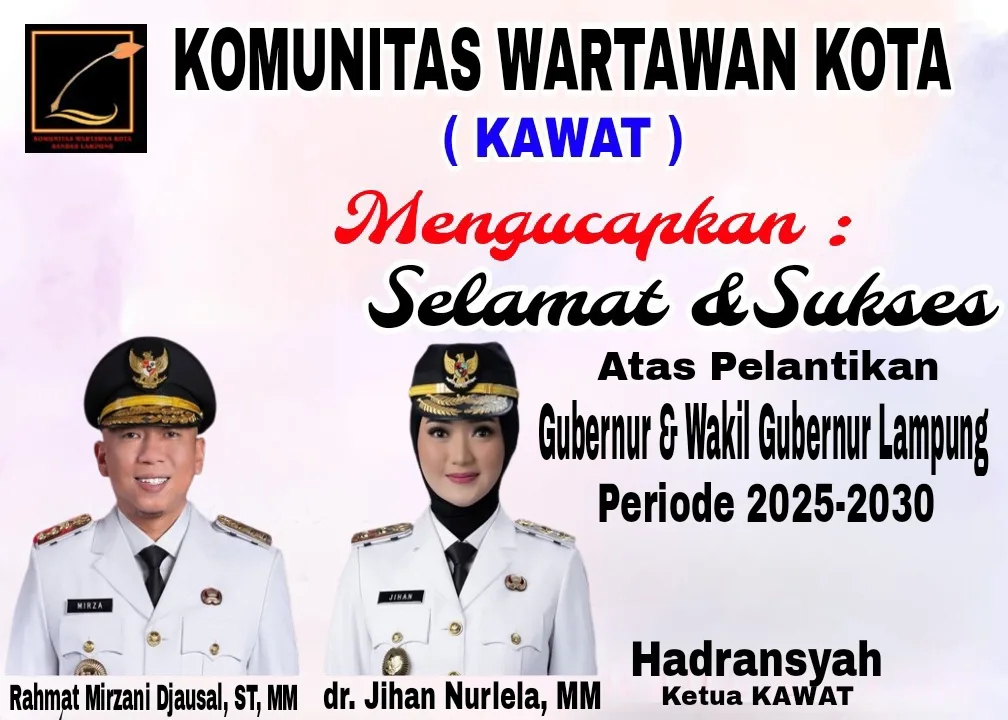 JURNAL KOTA, BANDAR LAMPUNG – KAWAT Mengucapkan Selamat & Sukses Atas Pelantikan Gubernur Dan Wakil Gubernur Lampung Periode 2025-2030